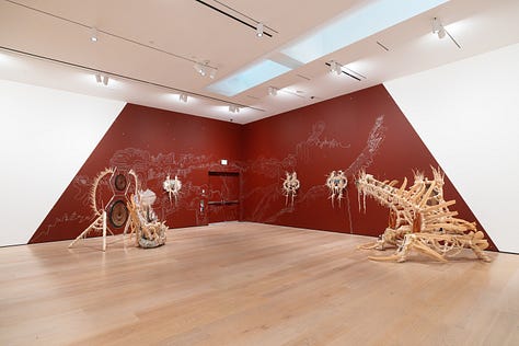REVIEW: Several Eternities in a Day: Form in the Age of Living Materials at the Hammer. This ambitious and visionary biennial-ready assertion of material ambition was curated by Pablo José Ramírez, in an exhibition that moves beyond the survey format, granting its 22 artists the space for fully visualized, operatic installations. The gallery becomes a sequence of pocket universes—distinct site-specific environments that maintain a constant dialogue across their sight-lines. With a consciousness anchored by the very satisfying presence of Ana Mendieta, the exhibition’s power lies in how it handles its lexicon. While its synecdochal materials—avocado, cacao, cochineal, and raw earth—are rooted in Indigeneity, the work refuses to be siloed into an anthropological discourse, as these artists engage directly with the Western art historical ecosystem as well.