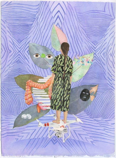 It is particularly striking to see artists like Carmen Argote, known for working at an intimate corporeal scale, command this kind of expansive territory with such authority—alongside the massive, fragrant earth-mounds of Edgar Calel that reset the ongoing conversation with Land Art and contemporary sculpture, and whose boulders Argote hosted in her studio during their gestation. Jackie Amézquita’s 2,500-pound slab of California soil and harvested rainwater brings geometeorology face to face with the eternal impulse to create understanding; Guadalupe Maravilla’s towering “healing machines” utilize gongs, skeletal armatures, weavings, and medicinal organic materials—affecting works that seem entirely capable of healing, and are occasionally activated with sound.